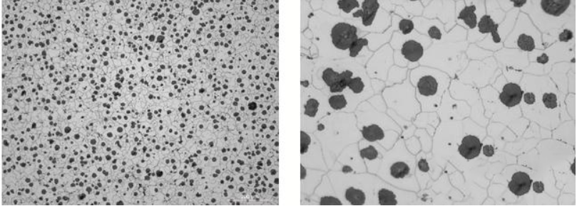 Oleh karena itu, berdasarkan pengamatan empiris, batas atas setara karbon pada besi ulet tercapai ketika grafit mengambang diamati pada besi cair (pada suhu sekitar 1200°C). Dampak kandungan karbon terhadap kinerja besi ulet: Kandungan karbon dalam tuang besi ulet mempengaruhi jumlah grafit yang diendapkan selama pemadatan, yang mengacu pada ukuran rata-rata atau jumlah bola grafit. Biasanya, kandungan karboncoran besi uletberkisar antara 2% dan 3,9%, namun penting untuk memahami dampak pengurangan kandungan karbon terhadap sifat mekanik besi cor. Hal ini harus dipertimbangkan berdasarkan struktur, dimensi, ketebalan dinding, dan kesalahan ketebalan dinding pada bidang dinding yang berdekatancoran besi ulet. Mengurangi kandungan karbon dalam besi ulet dari sekitar 4% menjadi 2,5% dapat sedikit meningkatkan kekuatan tarik dan kekuatan luluh (sekitar 23 hingga 31 N/mm²) dan juga meningkatkan perpanjangan sekitar 5%, dengan peningkatan nilai dampak yang signifikan.